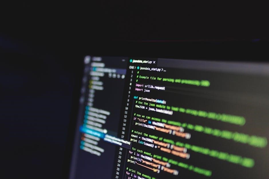 Algorithm analysis, including Big O notation, is crucial for evaluating efficiency; PDF resources detail these concepts for optimized Python code.